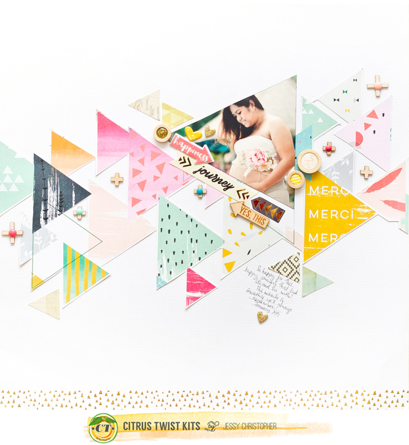 This layout featuring the beautiful triangle paper called "Rustic Trianges" by PinkFresh Studio was put together with Main + Embellishment kit.