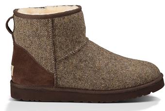 One of the most beloved silhouettes gets the highbrow treatment in soft suede and Woolrich Herringbone tweed. This classic mini tweed from UGG is an icon of casual style and keeps your feet dry and comfortable with a moisture-wicking interior and the trademark moulded-EVA outsole. The insole features a cushy foam sock liner for extra comfort and is covered with 17mm UGGpure to naturally wick away moisture.