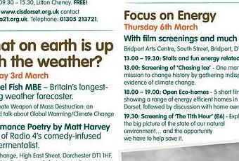 The Dorset Energized team are busy preparing for Climate Week 2014 with our very own special event – Dorchester Renewable Energy Exhibition and Advice Forum in Dorchester on Saturday 8th March.