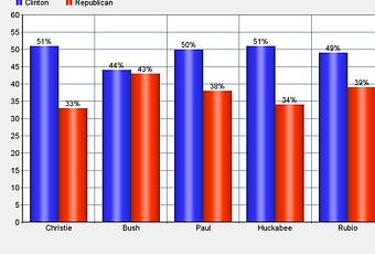 The charts above show the results of a new Quinnipiac University Poll -- done between January 27th and February 1st. In Pennsylvania, 881 registered voters were queried with a margin of error of 3.3 points. In Ohio it was 943 voters with a margin of error of 3.2 points -- and in Florida it was 936 voters with a margin of error of 3.2 points.