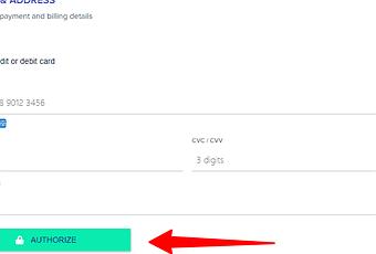 Fill out your credit card details on the payment page and click the "Authorize" button.