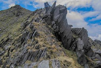It is not advisable to attempt this route in strong winds or gales. In winter, under snow and ice conditions, this route becomes a serious mountaineering venture requiring the use of crampons and ice-axes.