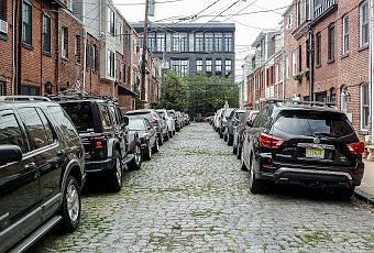 Cobblestone Streets, Overhead Wires, and a Sticker [Hoboken]