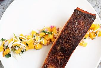 I enjoyed this salsa with a wonderful crispy-skin salmon today, but it would also be a fine addition to chicken or even grilled pork.