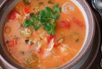 - Add water, salt, pepper, tomatoes, bell pepper, jalapeno pepper and okra. Bring to a boil and then simmer for 15-20 minutes.