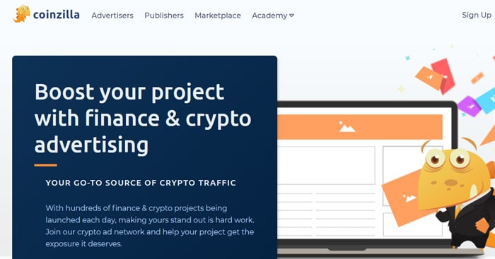Coinzilla is a Crypto and Finance-ad network. It caters to the needs of Advertisers by displaying and promoting their ads on its Publishers websites. As for the benefit of Publishers, they make money for the ads displayed on their websites by the Advertisers.