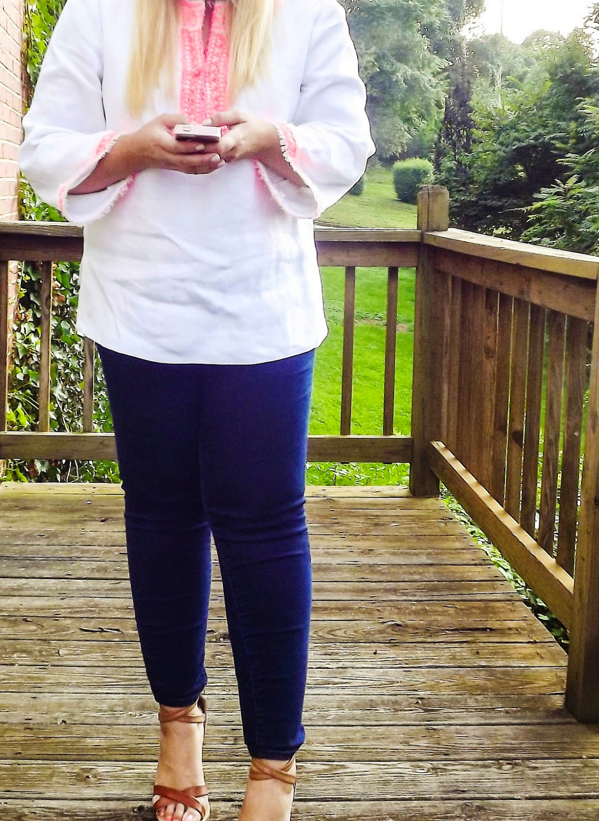 Outfit: Tunic- J.Crew Collection, Skinnies- Old Navy, Shoes- PiperlimeBecause I wanted to share with y'all my outfit for the first day of school, I paired it again just so I could do a post. I know...dedication. I actually ended up not being totally satisfied with the pictures. I really need to invest in a better camera. But for now I have my handy dandy one from 8th grade. Yes. I've had the camera I use since the 8th grade. Wild right?