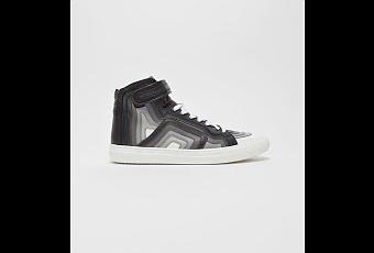 Do not attempt to adjust your screen! The grayscale is definitely real and most certainly on point. Pierre Hardy has got another color-way to its Wave Sneaker with this nice black/grey offering. Exquisitely made from strips of leather stitched together in progressive shades of gray to black, this high top makes for an attractive shoe to take you from summer right into fall. Available now at TresBienShop.com.