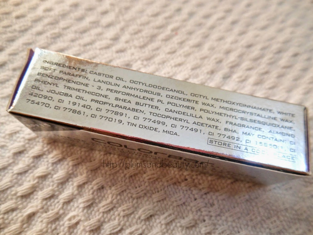 Colorbar says : Colorbar Crème Touch Lipstick comes with the promise of lips that are eloquent and luscious. It comes with lovely rich colors and rich in moisturizing properties making lips look fuller and creamier all day long. It has shea butter, Vitamin E and sunscreen agents at SPF 15 level which nourish and protect your lips against UV rays. It glides on effortlessly for flawless, even coverage for that perfect pout. Colorbar Crème Touch Lipstick are the perfect way to pamper your lips, not only you will love the rich, lustrous colour, but the lovely creamy texture of the lip color as well.