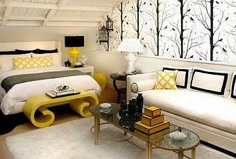 Want to go a little further than accessories for your room? You can frame wallpaper or paint a canvas to hang on the wall or bring in a spot color chair. When you want to change it up later you can switch out the chair to a different room or paint a new canvas.