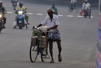 A photo taken by me this morning at busy Mount Road .. .. rare sight these days .. an elderly man pushing his cycle laden with some groceries and vegetables .. .. would have been a very ordinary sight a few decades ago! Perhaps not any longer. Chennai Metropolis bustles with traffic – one finds so many vehicles of various hues with tens of thousands of people on the roads all time.