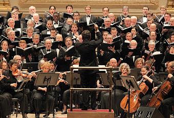 Pyramid scheme: James Bagwell (center) leads the Collegiate Chorale and the American Symphony Orchestra at Carnegie Hall.. Photo by Erin Baiano © 2013 The Collegiate Chorale.