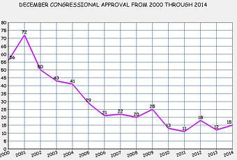 The Gallup Poll has released its latest survey on public approval for Congress -- and it is a dismal one. The survey was done between December 8th and 11th of a random national sample of 805 adults, and has a margin of error of 4 points. It shows the congressional numbers are still in the toilet -- with only 15% of the public approving of Congress.