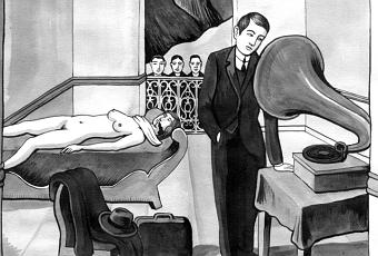 A few days late on my schedule here is the homework for May: a black and white cartoony version of The Threatened Assassin by Rene Magritte. I always loved Magritte surrealist art, I discovered this one because it was once mentioned by David Lynch as one of his favorite paintings of all times.