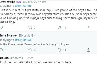 Contrary to the reports going around. 1 million boys didn’t actually advance to attack the Mushin area. Mushin boys teamed up in their large numbers marched on towards Ilupeju to take them on. They wouldn’t dare to enter Mushin of course.