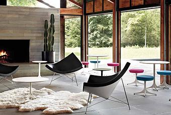 Sheepskin rugs set off Herman Miller’s Nelson Coconut Lounge chairs’ sleek shape perfectly.