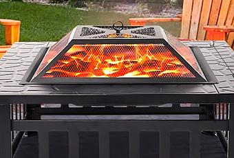 -- This durable outdoor square fire pit is made of heavy-duty iron mesh and frame. Its square shape provides stability, while the mesh lid prevents burning embers from blowing. It includes several accessories for convenient operation and can keep you warm on chilly winter days.