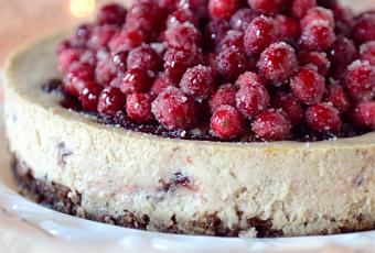 Cranberry Eggnog Cheesecake w/ a Whole Wheat Brownie Crust & Sugared Cranberries