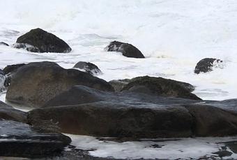 We walked along the ocean on Saturday morning. The sun had not yet broken through the clouds and it was grey and misty. The waves were high, crashing and covering the rocks, receding quickly as another one crashed.