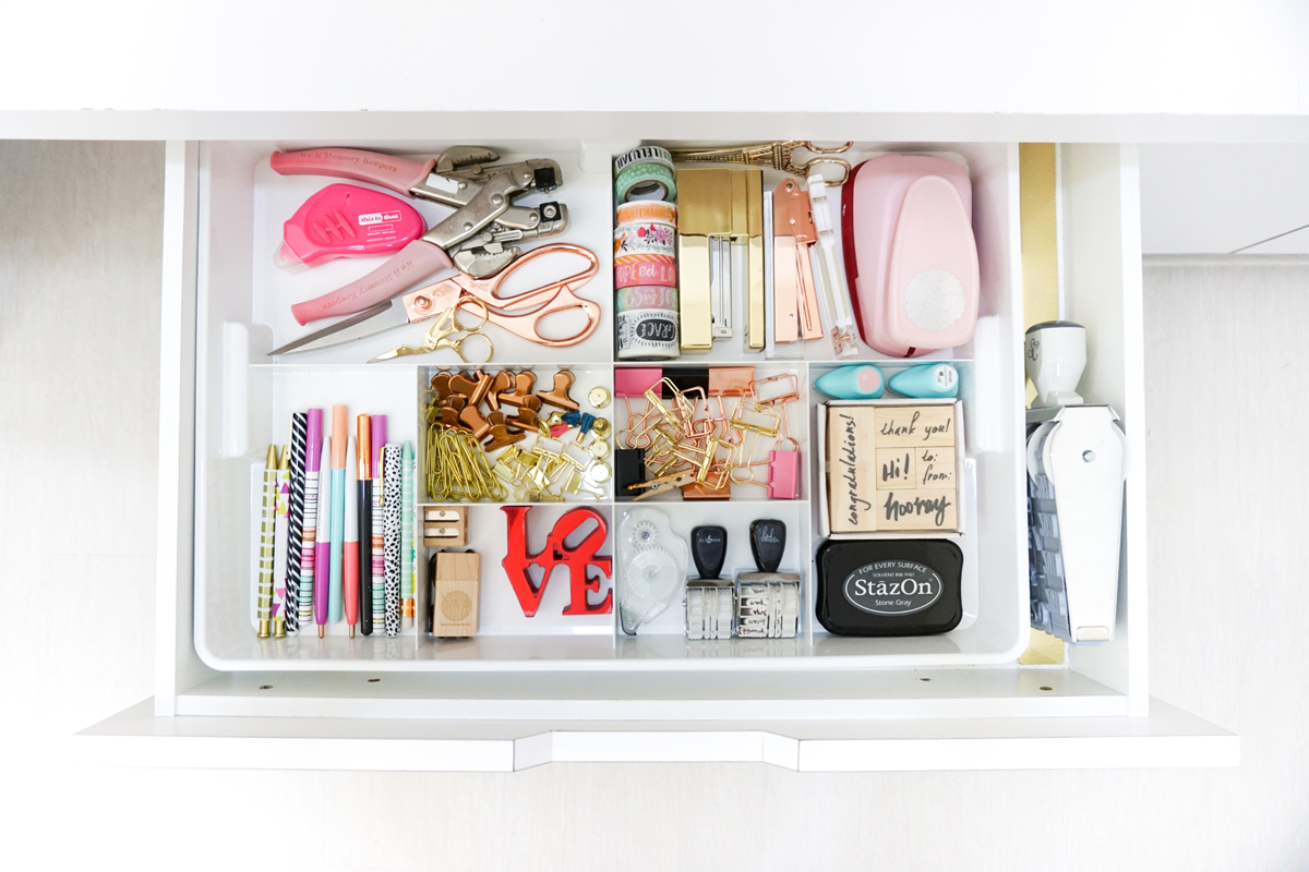 That small & large black and white checkered magnetic boxes are great to use as part of my desk display or to store pretty trinkets/embellishments or simply use it to keep ready handmade cards/tags for that special one. I also love using projects that I have created as part of my craft room decor. It sure gives the personal touch to my craft room. These desktop organizer are the best! I love arranging new scrapbook collections in them. The compartments fit many products pretty well too. Tips: I always love displaying the products on my desk so I'd use them on my projects. Having pretty little things on your desk will spark some kind of inspirations/ideas as well :)On these longer drawers, I keep most of my stationeries here and also things that I use frequently ie: photo printer, paper trimmer, journaling bible, etc. TIPS: Things that are within reach sure encourage me to use it even more. I do switch things and the products around whenever I feel I'm lack of inspiration. Sometimes just rearranging the supplies gives me the instant creativity boost!These cute little nesting containers are perfect to display little projects like cards and mini albums or even storing little embellishments. I love that my daughters and I can just pick the mini albums out and have a look again!To save space on the desk, I store this paper rack in one of the upper cabinets. What I love about the paper rack is you can pull each shelf in and out for easy access to paper. How clever! And of course with this rack, I can now arrange my papers by collections or colors :)