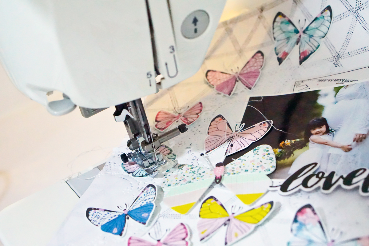 I wanted to create more texture to my layout and decided to stitch the middle section of the butterflies.