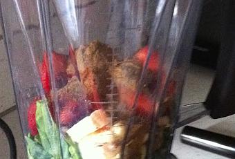 I did not sleep well last night. I tossed and turned and laid there wide awake... I had night sweats(I even went and opened the bathroom window at 4a.m.) it helped a bit. I had nightmares so bad that I woke up with my heart racing... ICK! I woke up having cravings for carbs and coffee - they weren't HORRIBLE, but they were present. I drank my 32 oz. of water. Then I made my green drink, which I admittedly put more fruit in due to my cravings. In the mix:-2 cups of spinach tightly packed-banana-handful of strawberries-scoop of chocolate flavored greens-scoop of chia seeds-1 cup waterSounds tasty doesn't it?! It wasn't. It was a horrible color(see below) and it was surprisingly bitter. I think the strawberries were a little on the tart side. I really wanted to add almond milk but told myself that would make it a smoothie instead of a green drink... This is a perfect example of me not doing what gut/body is telling me to do; mistake. I didn't listen to the coffee and carbs craving but for god's sake add some almond milk if you want! Lesson learned.