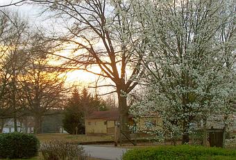 The sun comes up to the left of my driveway. As I leave for work and head down the driveway and stop to look left for traffic, I often see the first rays peeking up over the hill. In spring, the sun shines through the blossoming trees, illuminating them so they look like fiery snowflakes.The Lord made the sun for His own good pleasure and for us as a useful time-marking tool