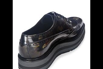 It's been a few year now since Prada introduced their infamous updated creeper silhouette, but it still has much relevancy and looks fresh & modern today. Here it is in a coated camo leather print complete with the classic wing-tip tooling. This version features a stacked rubber sole in grey and black that gives just enough height without becoming something you'd find on a mid 90s downtown New York club kid. Pair this with trim cropped trousers or high-cuffed inky denim. Available now at BergdorfGoodman.com.
