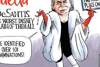 Cruella DeSantis Political Cartoon is by Dave Whamond at Cagle.com.