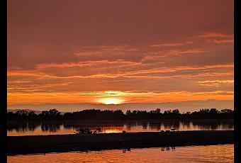 We were rewarded with a festive German feast for dinner onboard, the most spectacular sunset of the week, some festive cocktails, and then the excitement of moving through the first of several locks that will take us upstream.