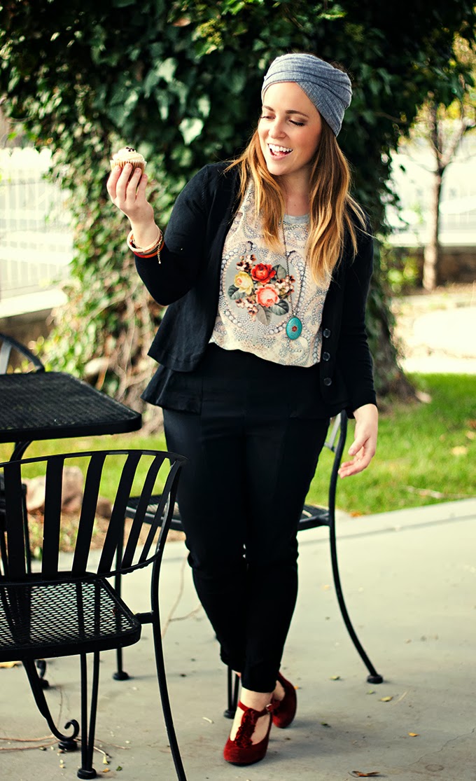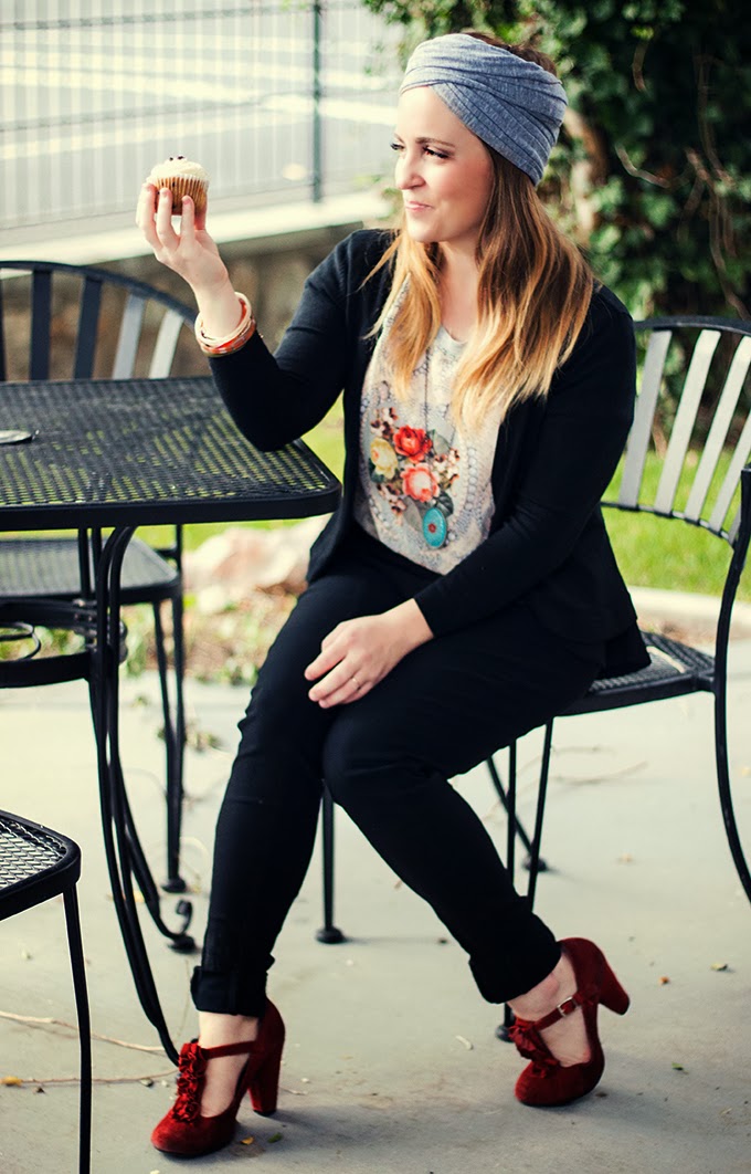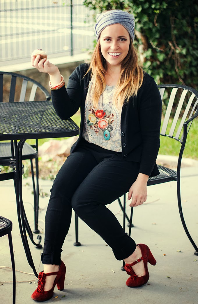 When posing with a cupcake... what do you do? I went to this local bakery and purchased a cupcake, I thought it would be cute to pose with it for my outfit photos. As we started to take the photos I realized how silly us bloggers can sometimes be. But I powered through and went with the cupcake photos. You're welcome.
