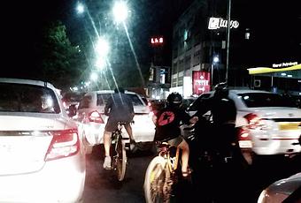 How right !! ~ a small boy wading in bi-cycle amidst speeding vehicles on busy traffic hour in Chennai (2018)