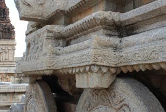 This stone chariot is one of the most iconic scenes of Hampi. The wheels on the chariot were once capable of moving, but no more. It remains an amazing sculpture. It’s in the Vittala temple complex, and is one of the first things that draws the eye when one enters through the gate that one can see in the background.