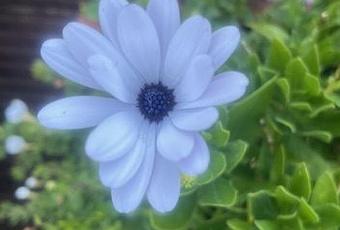 at African Daisies and Indigo Lobelia and little white flowers in my garden