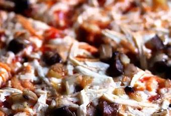 Ooh this pizza is good! It's Daiya's Mushroom and Roasted Garlic Frozen Pizza. Everything about it is spot on. The crust is super thin and crispy so you don't have a soggy crust sitch on your hands, which is never very pleasant.