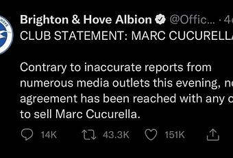 Brighton forced to issue a statement denying the reports of Cucurella joining Chelsea although the deal eventually happened