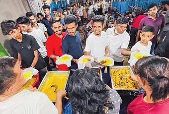 Many Dansals were organized across the country during the last few days on the occasion of Esala Poya. Compared to the past few years this year saw the largest number of Dansals across the country. In addition to Bakthi Gee recitals, exhibiting lanterns and pandals, Sil programmes and other religious activities were held. The Picture shows a rice dansala at Biyagama Siyambalape Junction. Picture by Marlon Karunaratne