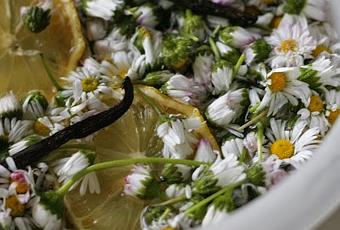 pick around 5 cups of daisies, add juice of half of a lemon, 5 cups of water,