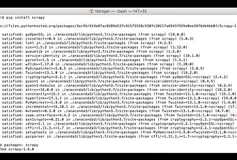 The specifics of the programming environment, each of its packages, and whatever machine or server you’re working with can affect compatibility. Note, however, that Mac and Linux have no problem downloading Scrapy with PyPi. If you’re unfamiliar with this process, here’s what your terminal should look like: