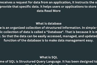 A database is an organized collection of structured information. In simple words, the systematic collection of data is called a "Database". That is because it is made very systematic. So that the data can be easily accessed, managed, and updated. The basic function of the database is to make data management easy.What is SQL
