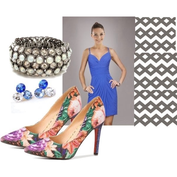 Cobalt blue is prettiest of all colors.The neckline in itself will surely make your evening interesting. Prance around in these flower printed pumps. They add a little bit of quirkiness to your outfit.