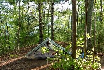 I hiked up a couple miles and ended at 5:45pm at a site I'd had my eye on all day. Guthook's AT Hiker app has small sites mentioned and noted this on and that it only had space for one tent. I hoped no one took it and aimed for it. It's great! I'm just above the trail halfway up the steep claim with the water well below me. It like my own little peninsula cliff. It doesn't show up, but far below me behind the trees is water.