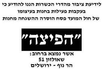 The Eida Hachareidis announced that they are giving a hechsher to that same pizza shop in Har Nof. The one that just a few days before had been accused of "activity" during Pesach.