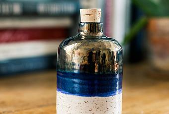 We're loving the Indigo Chrome Bottle Vase (which, with cork included can also work as a bottle.) Combining speckled clay, ombré striping, and a metallic chrome glaze—every detail is all done by hand from Object + Totem's Philadelphia studio.