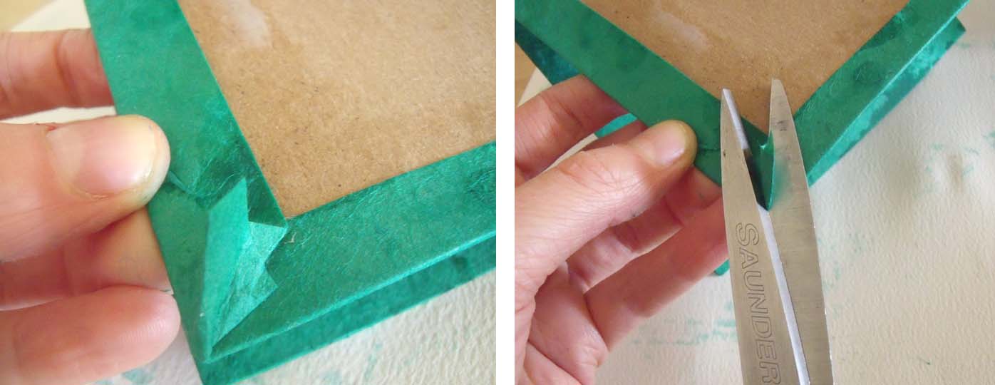 Step 5: Push the paper up at a diagonal at each of the corners and snip away the excess with scissors.