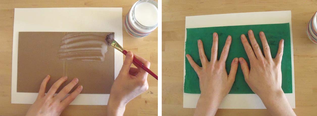 Step 2: Brush a thin layer of decoupage on the inside of the cardboard, then cover with a piece of paper larger than the cardboard and press down.