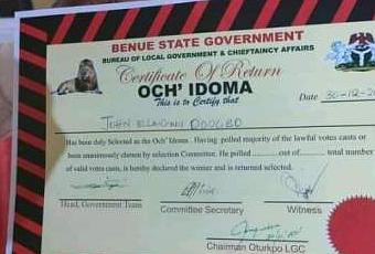 Recall that the Benue State Governor, Samuel Ortom had assured that choice of the brand new Och'Idoma can be clear.