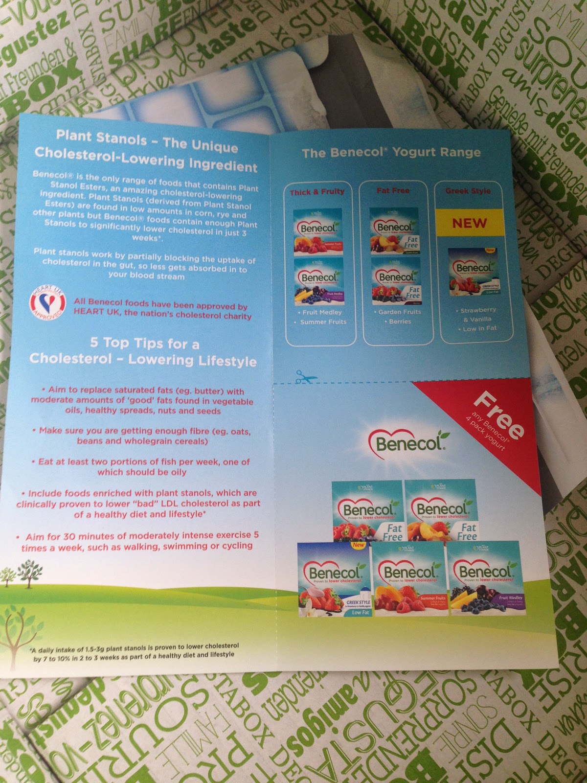 Benecol greek style yogurt: This month sees the return of the fridge item, which is sent as a voucher for you to use at your local supermarket. They are thick and tasty yogurts contain plant stanols; a unique cholesterol lowering ingredient which is proven to significantly lower cholesterol. Available in a 4 pack with 2 x strawberry and 2 x vanilla yogurts.