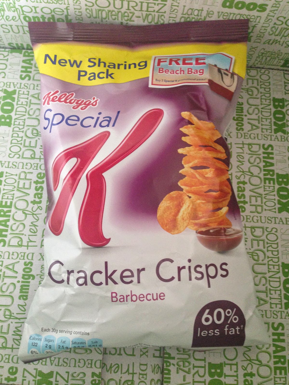 Special K Cracker Crisps: A savoury snack with 60% less fat than the average fat content of most other crisps on sale in the UK and available in a range of tantalising flavours, Sea Salt & Balsamic Vinegar, Sour Cream & Onion, Sweet Chilli and Barbecue.