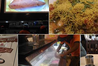 Sri Bhagya Grand opened only a few months back in Vijaya Bank Layout close to Bannerghatta Road, Bangalore and in a very short span of time has become one of the most crowded restaurants around. There is a lack of good veg eateries in this area which makes it a plus point for Sri Bhagya Grand. There are 2 menu’s here one for the self-service counter and the other for serviced part. They sells North Indian, South Indian and Chinese dishes. The range of food is simply fantastic from Pani Puri to Sandwiches, curries to biryani and noodles to dosa. It might be difficult to find a place during meal times especially during dinner service. Last time I had to wait for 20mins to get a table.
